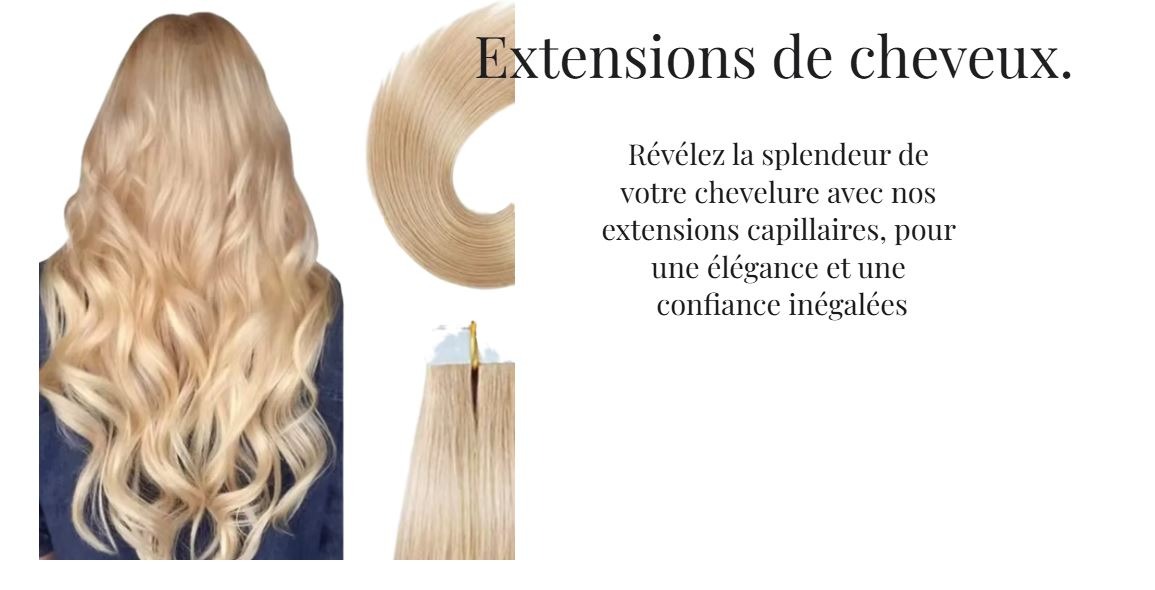 Je suis ravi de vous annoncer l'arrivée de notre service d'extensions capillaires professionnelles. Que vous souhaitiez ajouter de la longueur, du volume, ou simplement explorer de nouvelles possibilités de coiffure, nos extensions de haute qualité sont la solution idéale pour sublimer votre beauté naturelle et vous offrir la confiance que vous méritez."